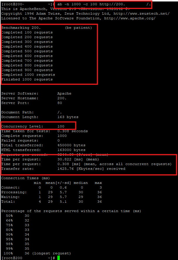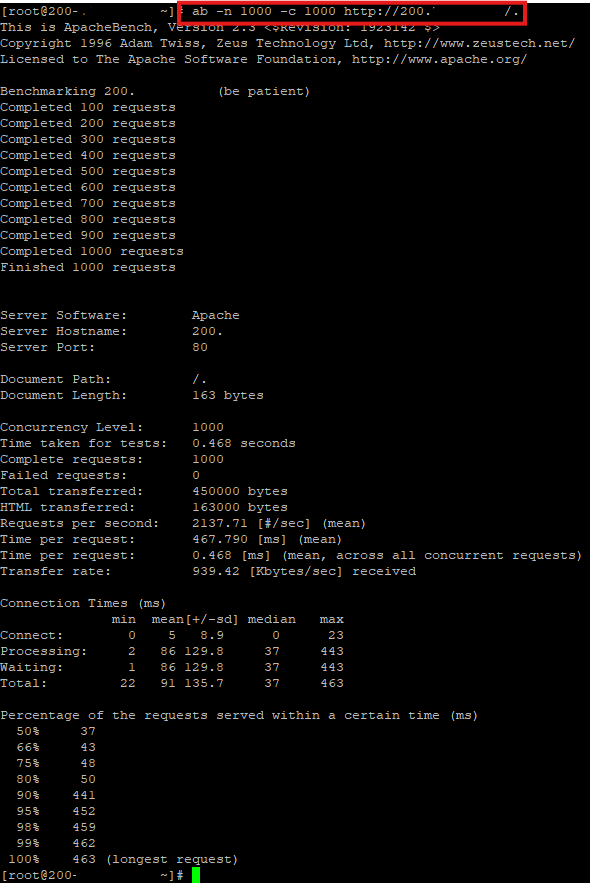 #ab -n 1000 -c 100 http://192.168.X.X/. (IP de tu servidor)