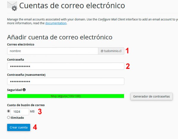 - Digite la dirección de correo deseada en el campo correo eléctronico